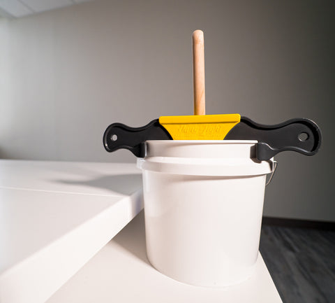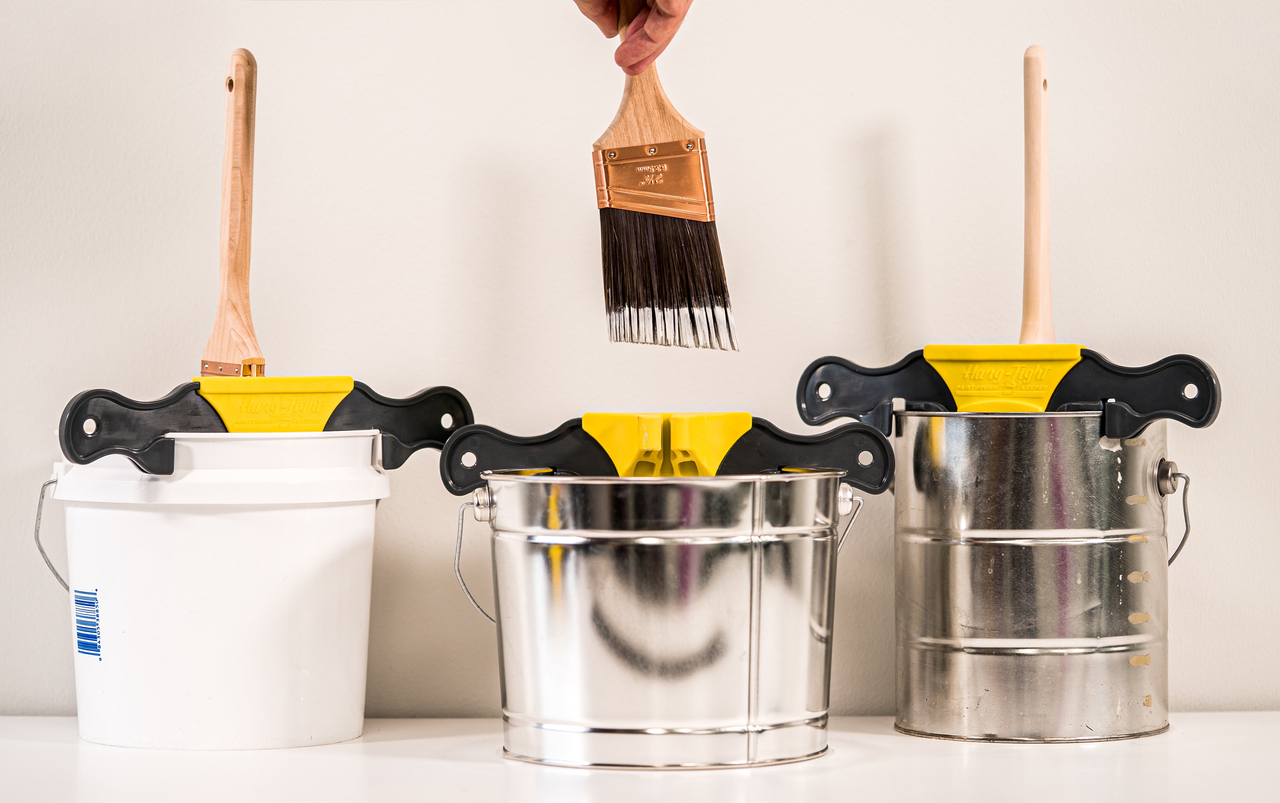 Simply snap Hang-Tight onto your paint can, slide your brush into the clip, adjust to the correct height to keep the bristles in the paint, and go do what you need to do. Then return to a wet and ready paintbrush and continue painting! Hang-Tight works with most brush sizes, cans, and pails.